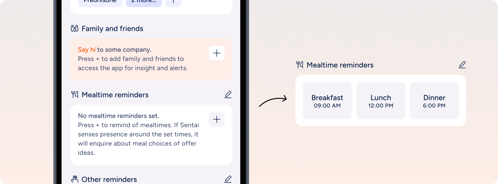 Carers who have access to the Sentai Pro Dashboard can also set and edit mealtime reminders in the dashboard.
